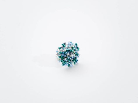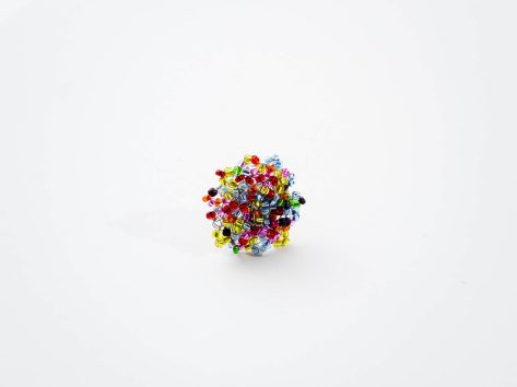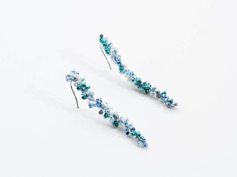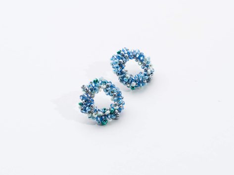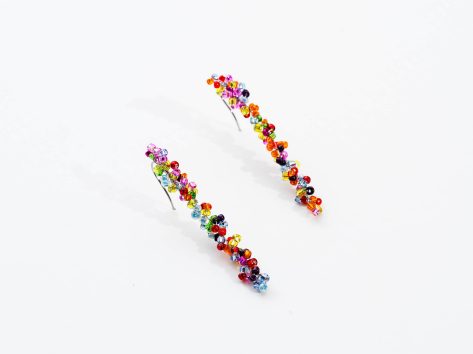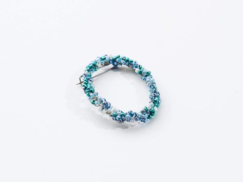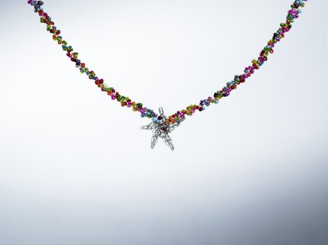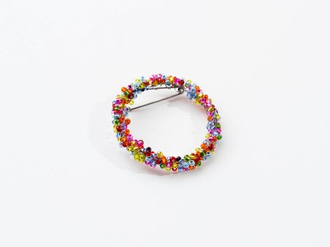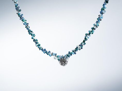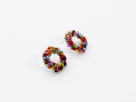 Diminutos cristales de colores tejidos con acero inoxidable. Alegre, luminosa, favorecedora.