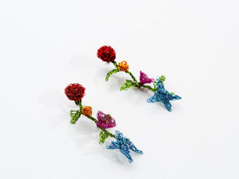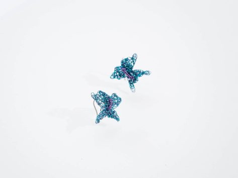 Mariposas en unos pendientes sencillos y fantasía de flores hojas y mariposas en los largos.