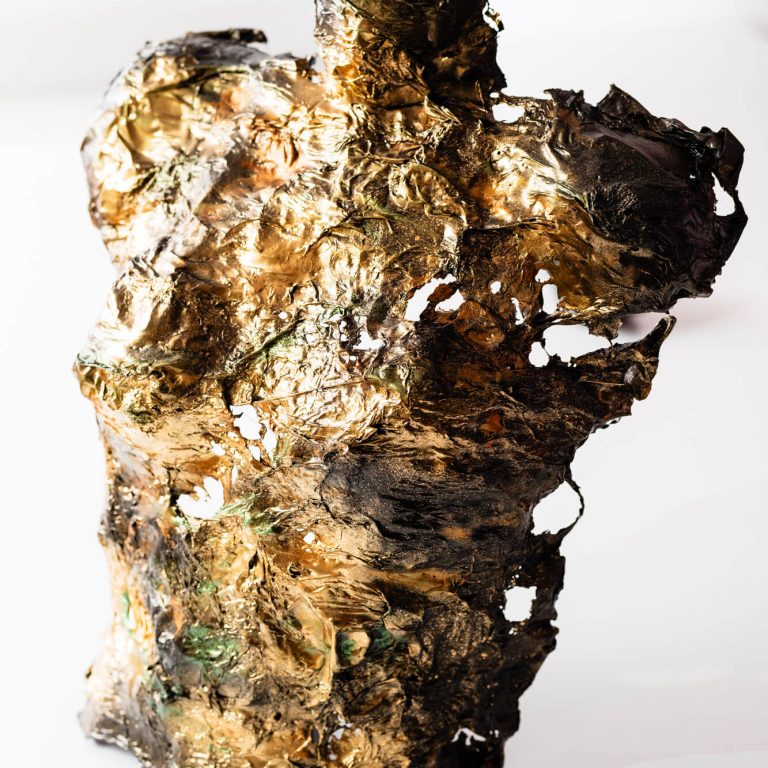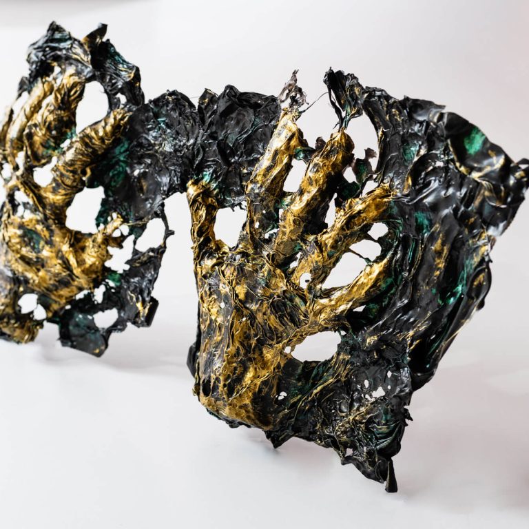 Se modelan con calor y se finalizan con pigmentos aplicados a modo de pátinas metálicas.